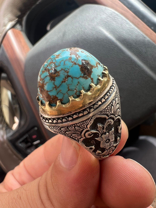 نگین این اثر از مغز فیروزه نیشابوره و بشدت خاص و چشمگیره