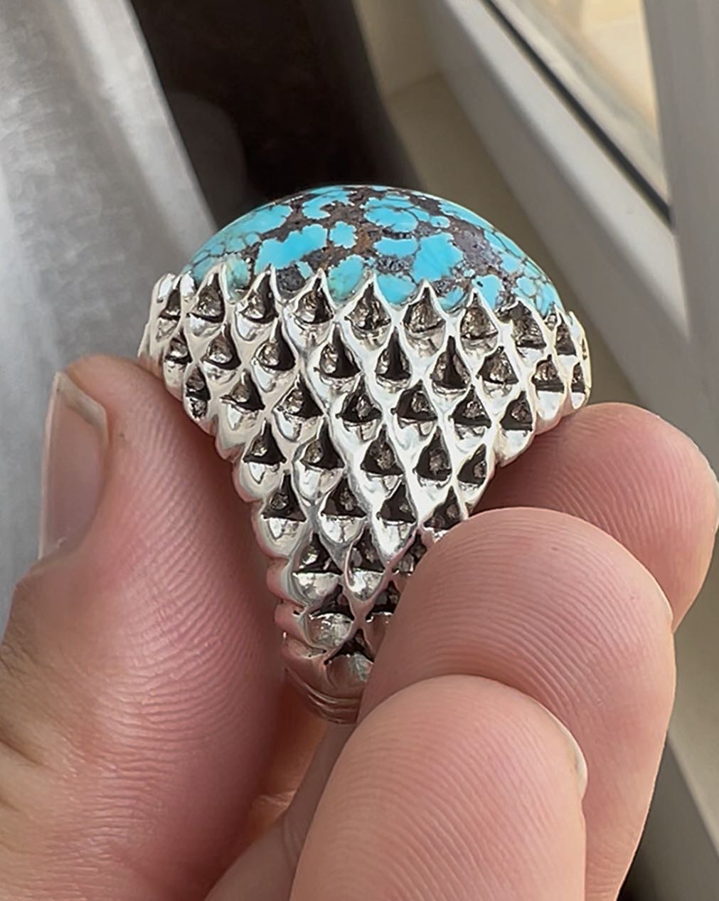 این انگشتر فیروزه مردانه نیشابوری بشدت نمادار و ارزنده هست که با داشتنش علاوه بر زیبایی میتونید از خواص فوق العاده فیروزه هم بهره مند بشید