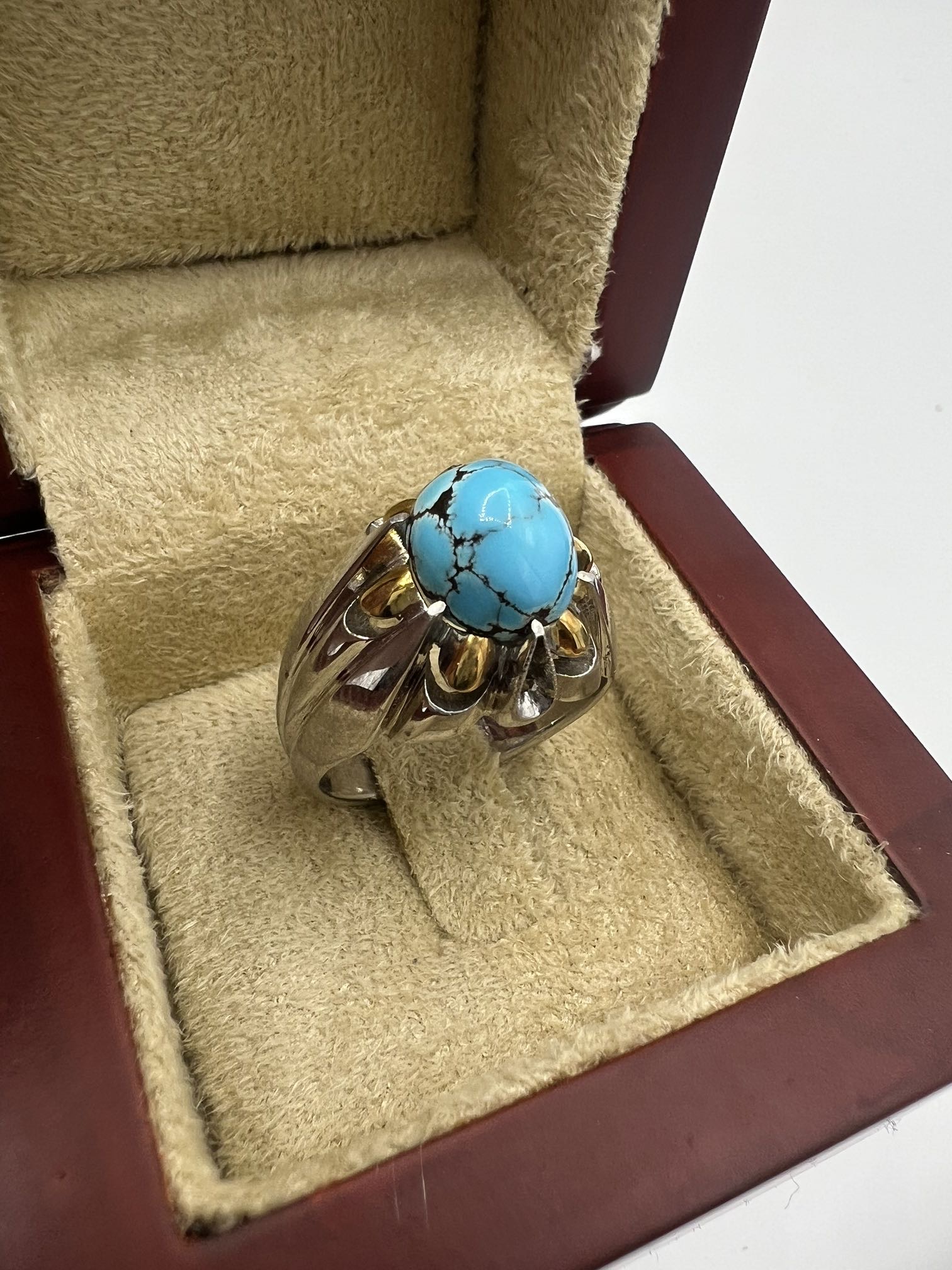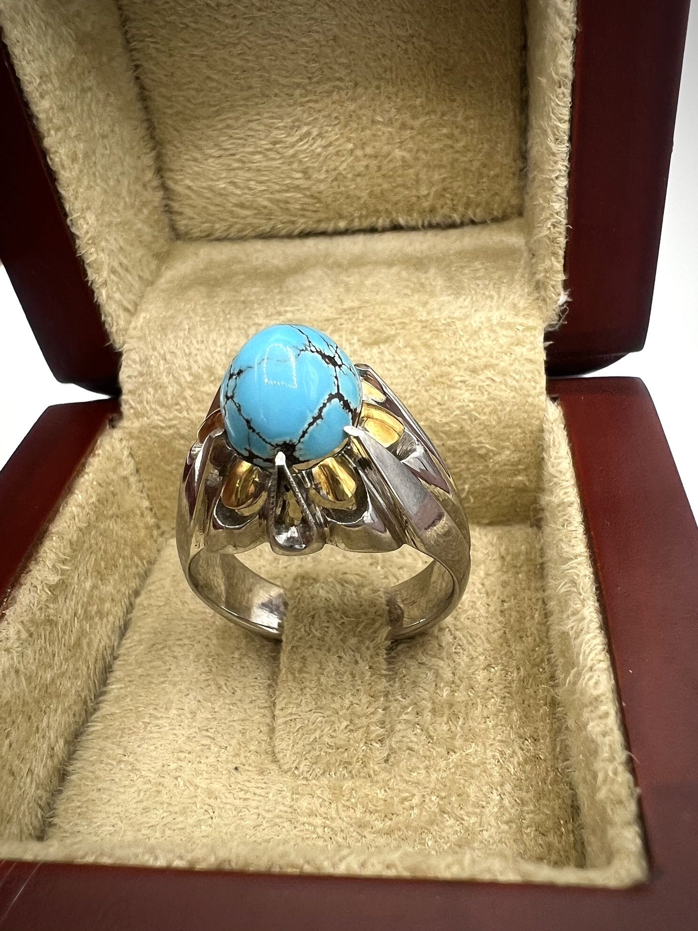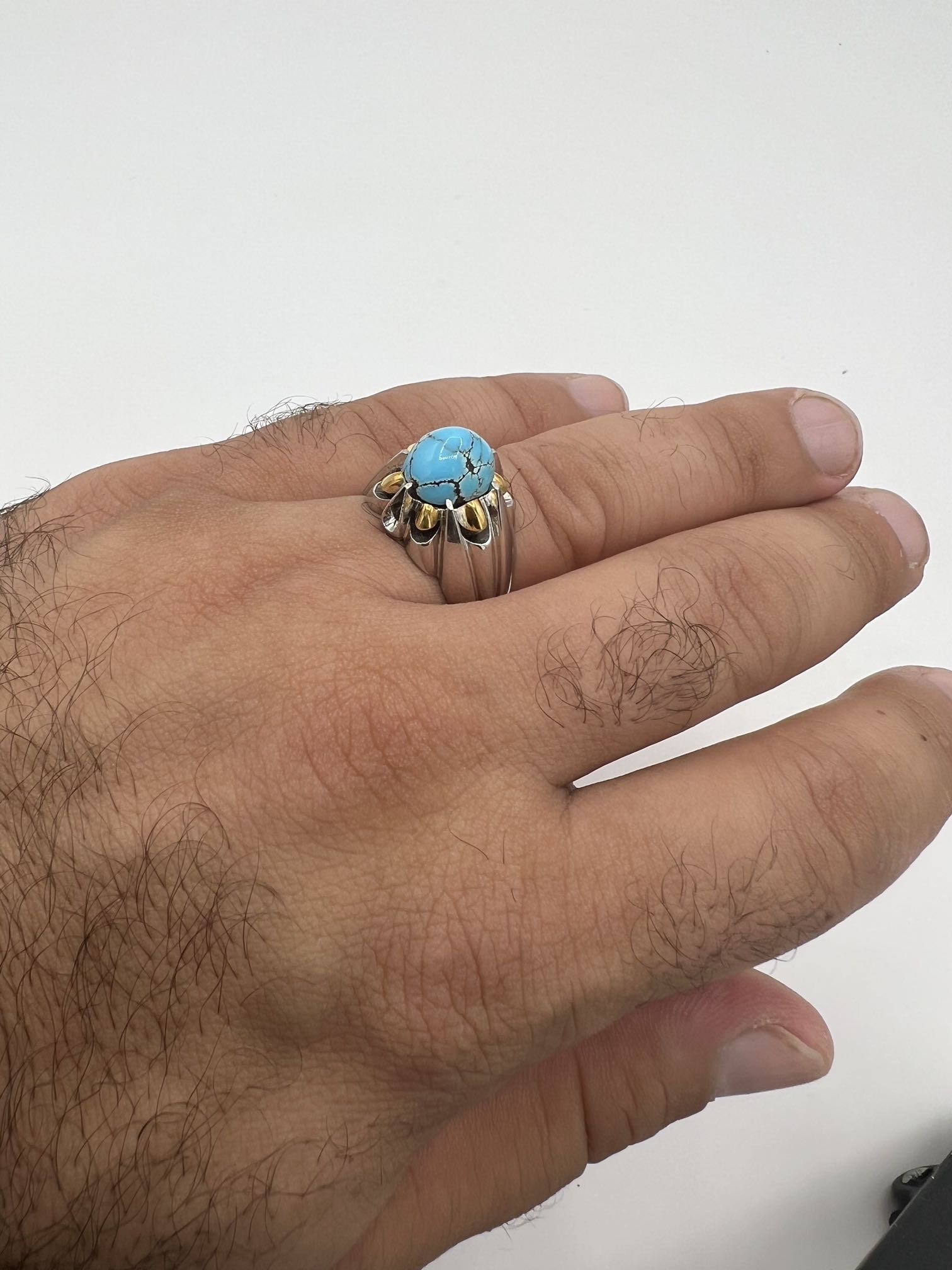 انگشتر مردانه فیروزه با یه نگین تراش گنبدی ، نگینی که از مغز سنگ فیروزه هست ، خوشرنگ با رگه های طبیعی سنگ
