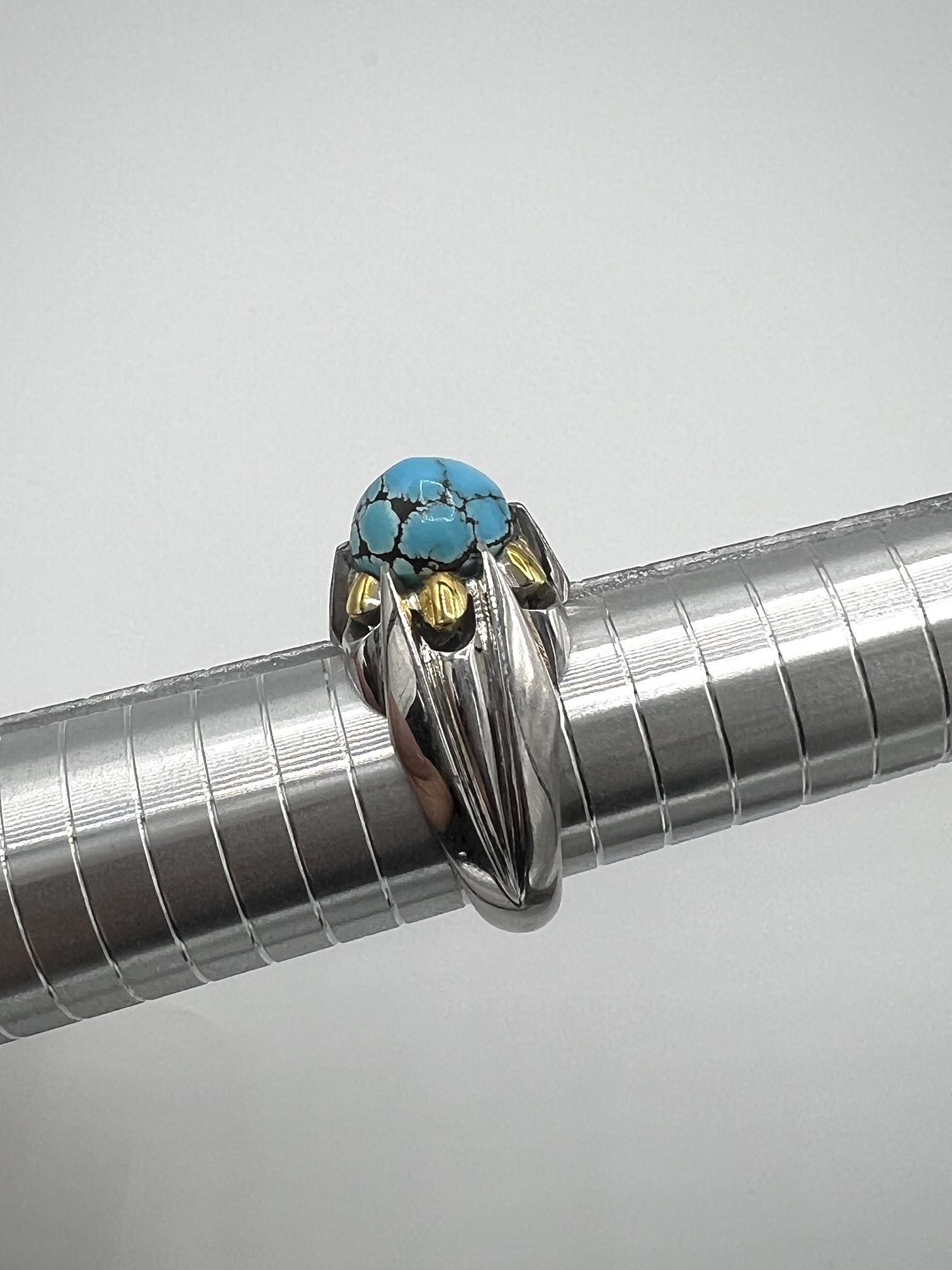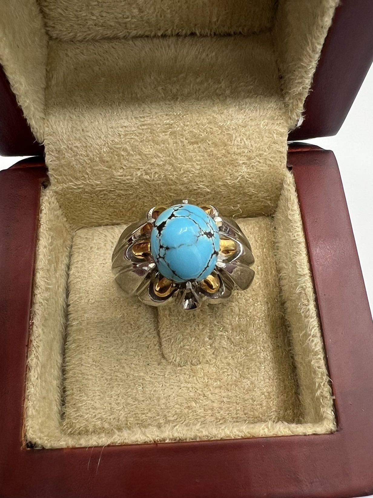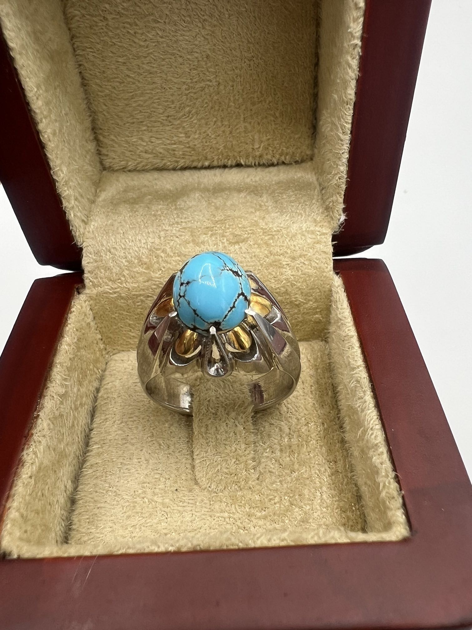 انگشتر مردانه فیروزه با یه نگین تراش گنبدی ، نگینی که از مغز سنگ فیروزه هست ، خوشرنگ با رگه های طبیعی سنگ
