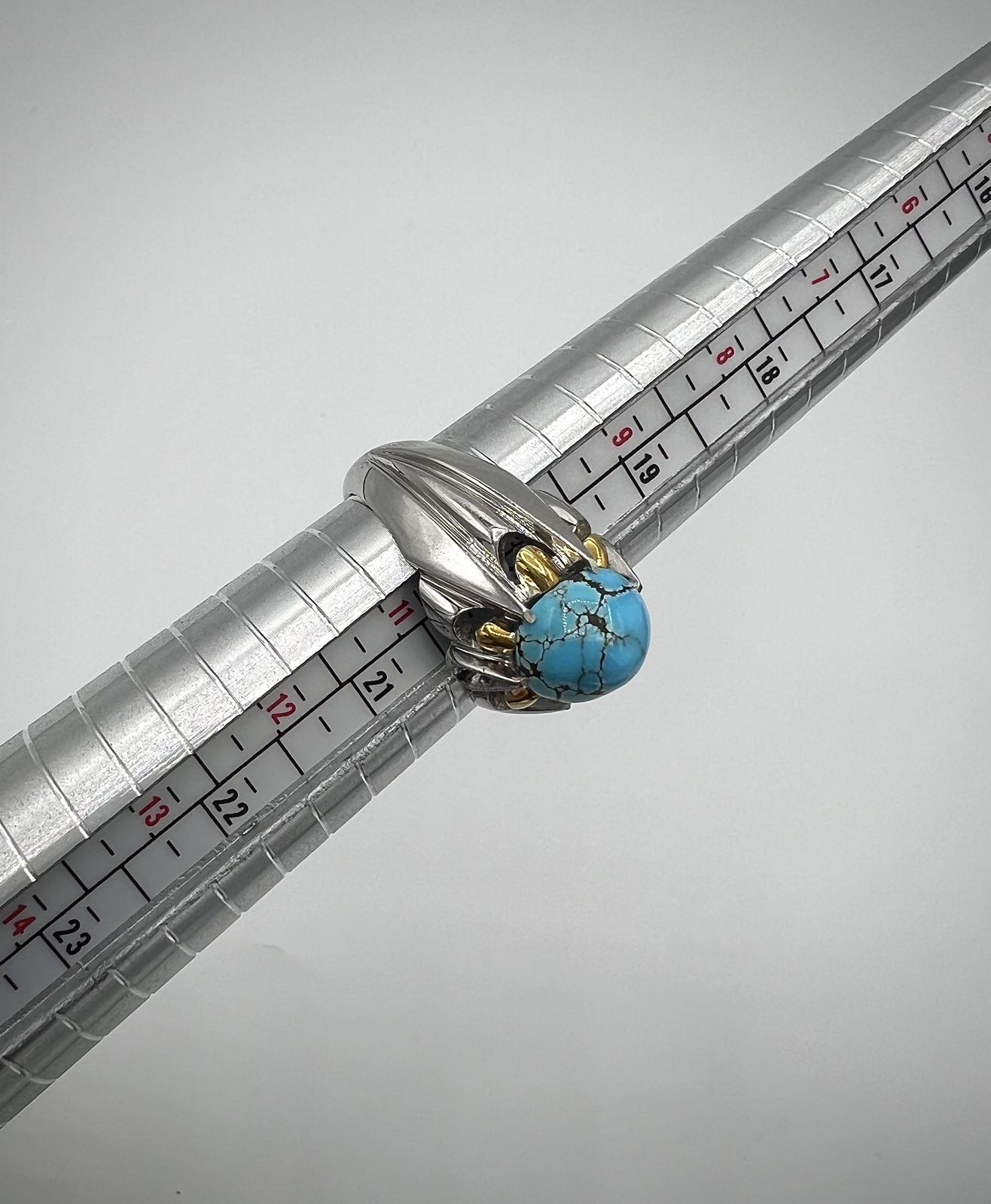 این انگشتر فیروزه با اره کاری منظم و آبکاری طلا نمای عالی داخل دست داره هرچند که دارای خواص فوق العاده فیروزه هم هست ازجمله افزایش رزق و روزی، افزایش آرامش، انرژی مثبت و...
