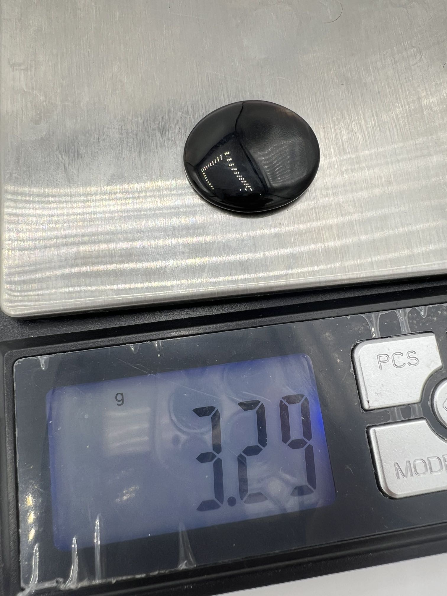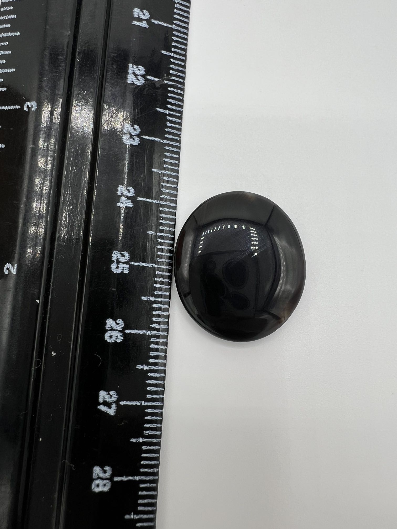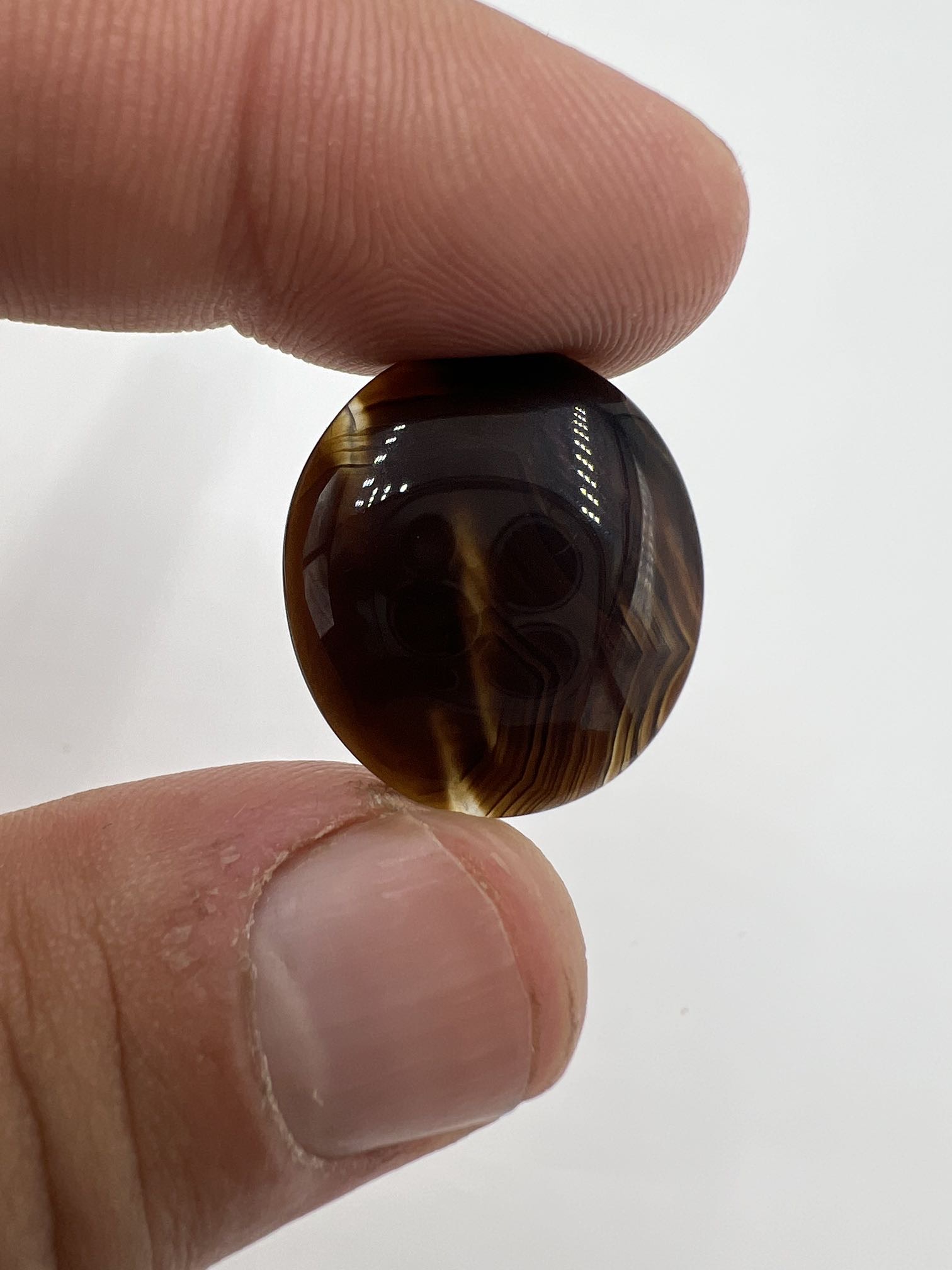 یک عقیق جزع یمانی خوش قیمت با رنگ و طبع فوق العاده و تراش نسبتا تخت و دایره ای.