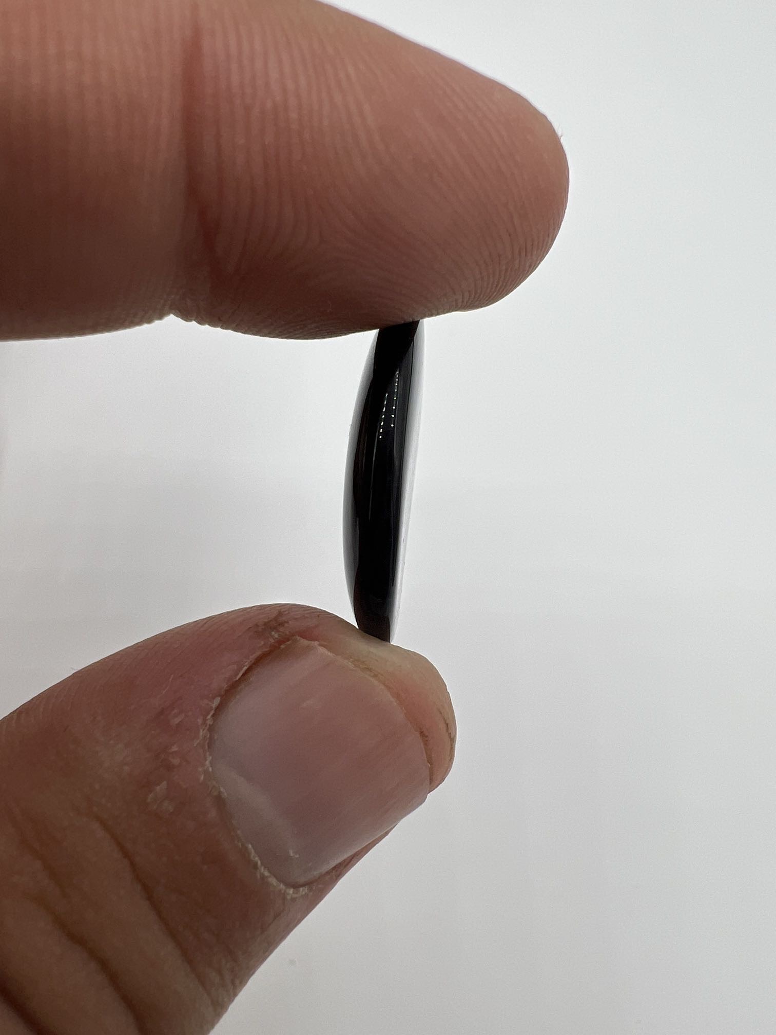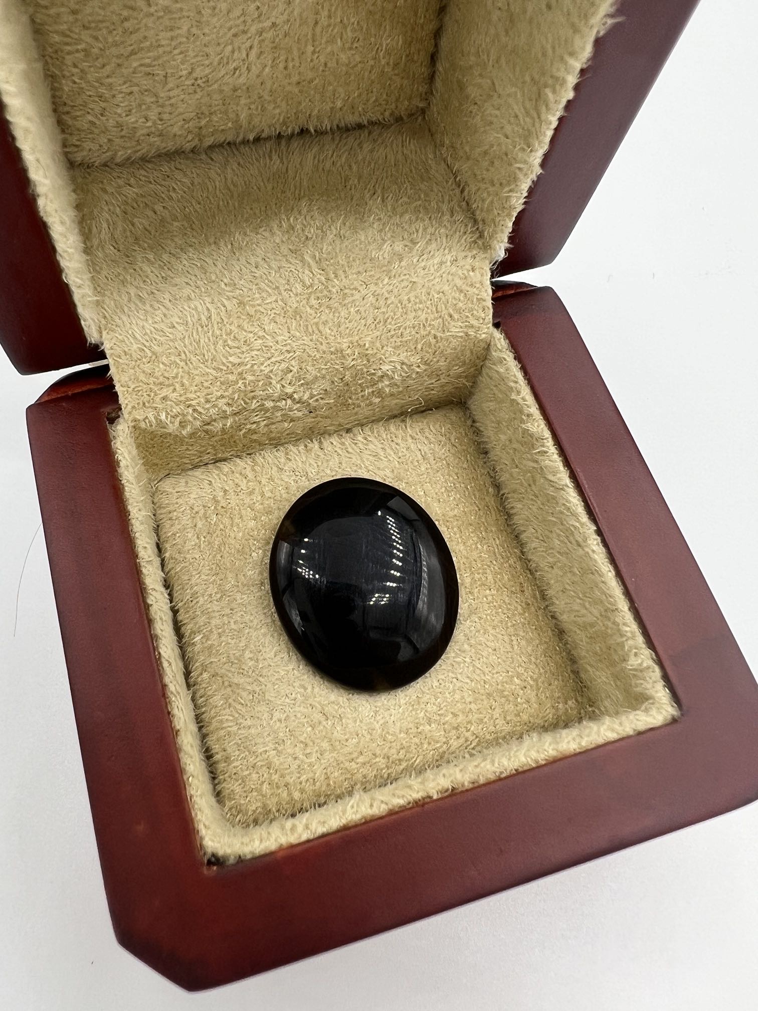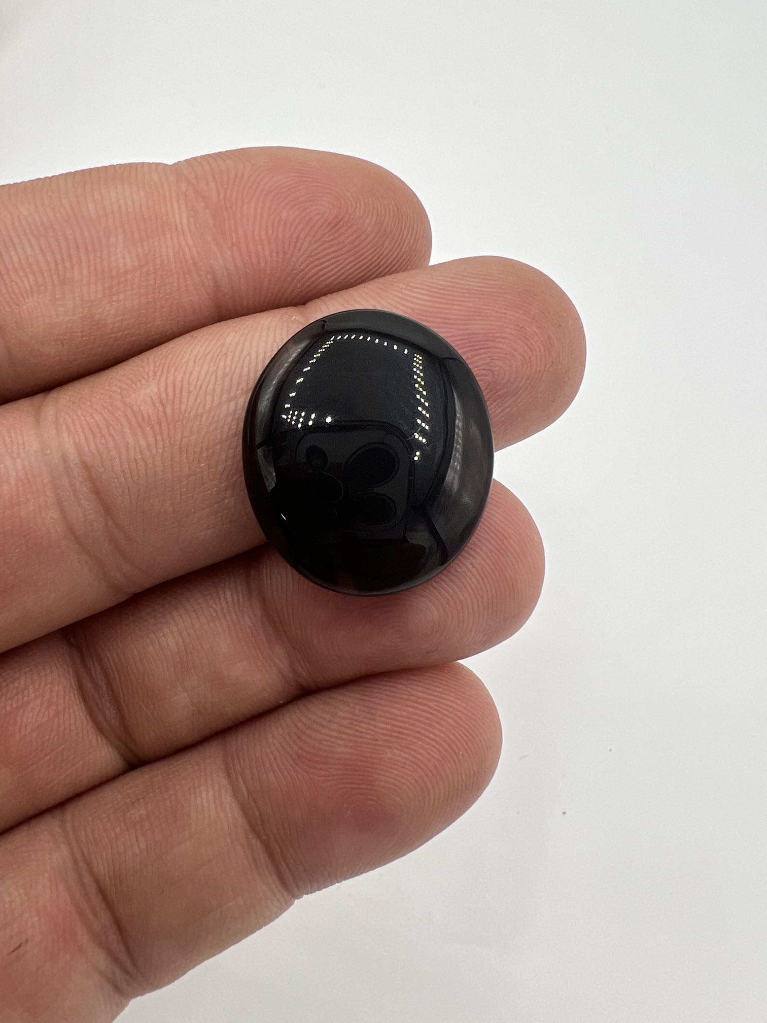 یک عقیق جزع یمانی خوش قیمت با رنگ و طبع فوق العاده و تراش نسبتا تخت و دایره ای.