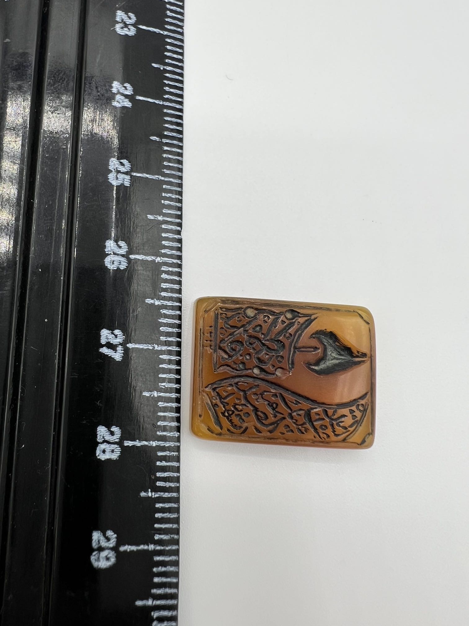 عقیق زرد با حکاکی تصویر زیبای شمع و ذکر حضرت زهرا سلام الله علیها