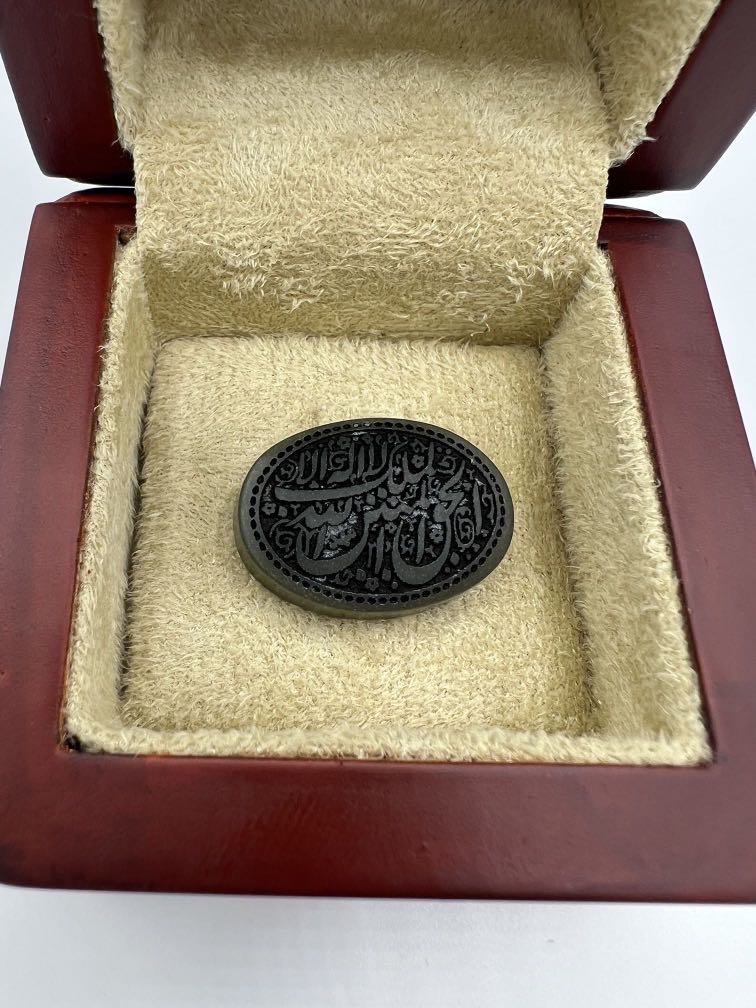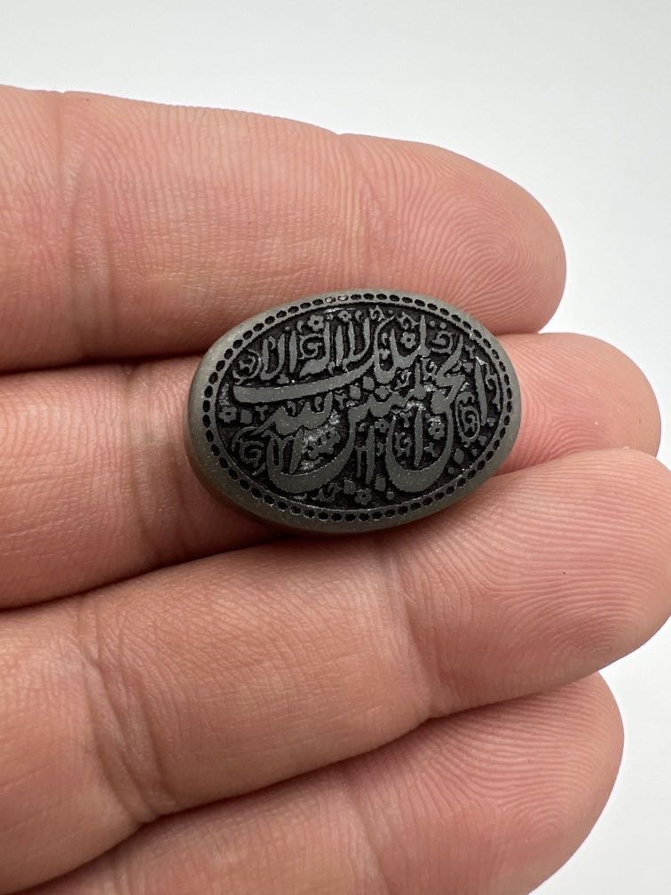 حکاکی برجسته ذکر لا اله الا الله الملک حق المبین روی یشم معدنی