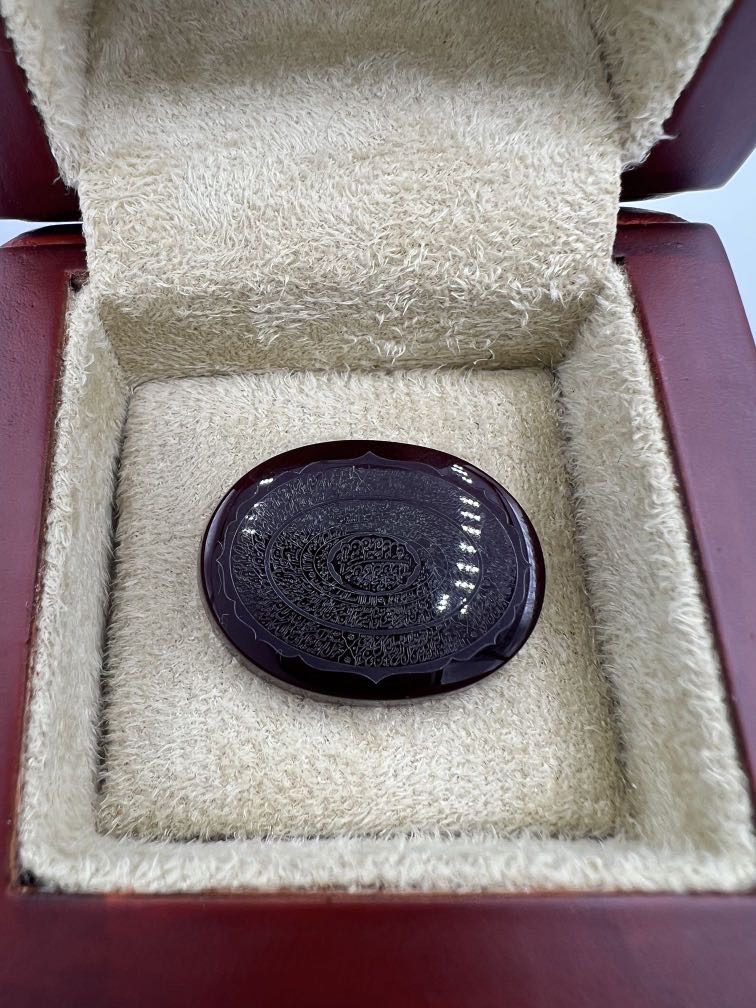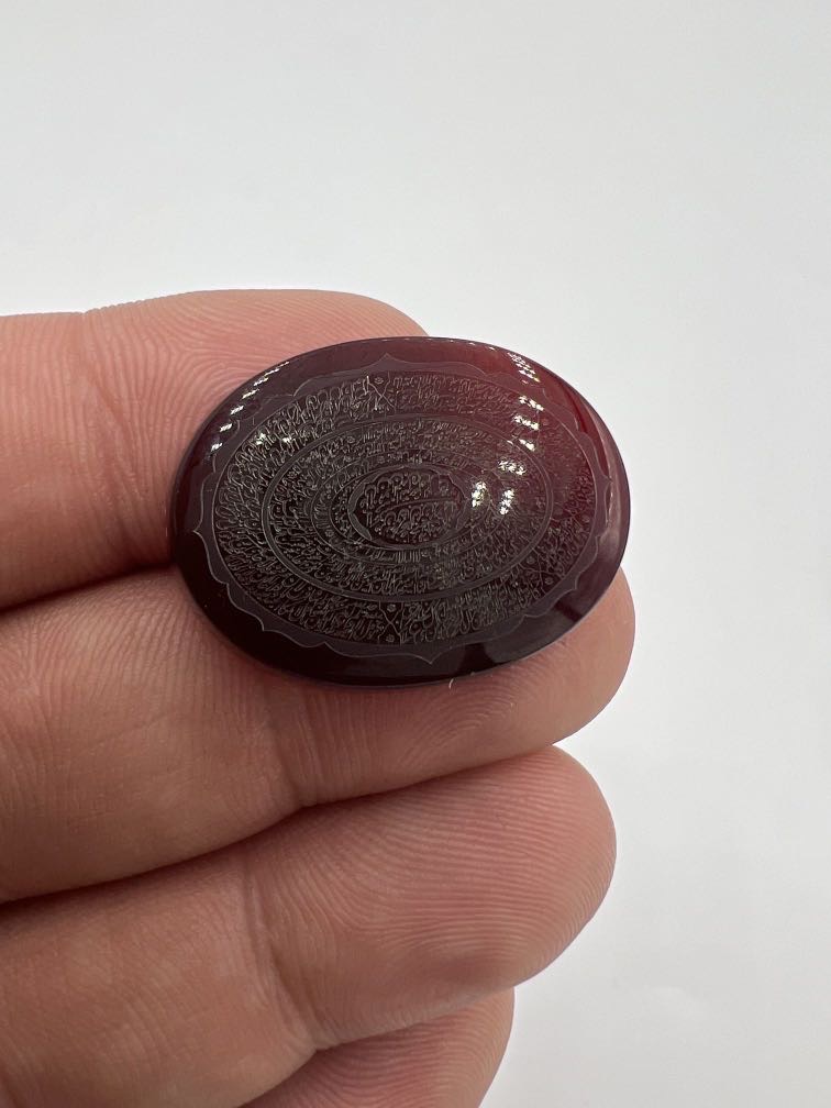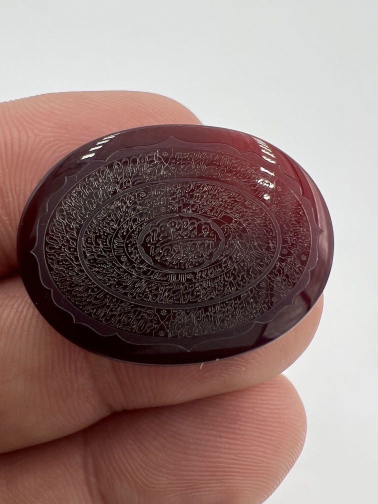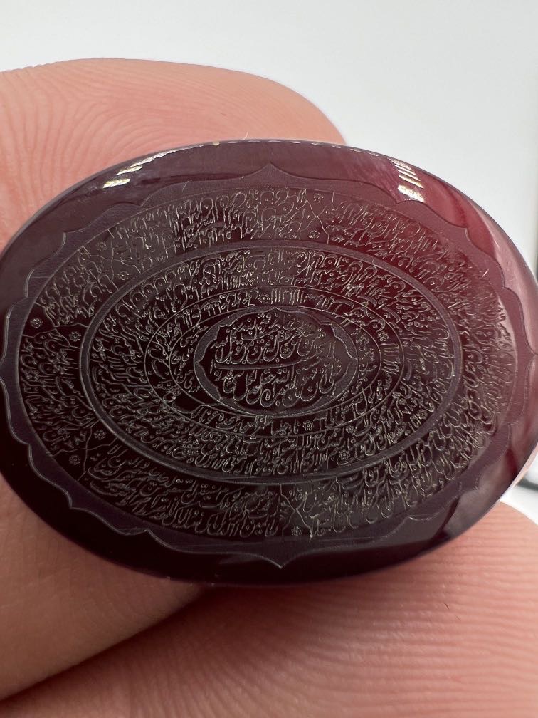 این اثر با ظرافت فوق العاده حکاکی شده وکاری است که با توجه به حکاکی دقیق چندین ذکر و رنگ سرخ نگین، بسیار ارزنده و نمادار هست