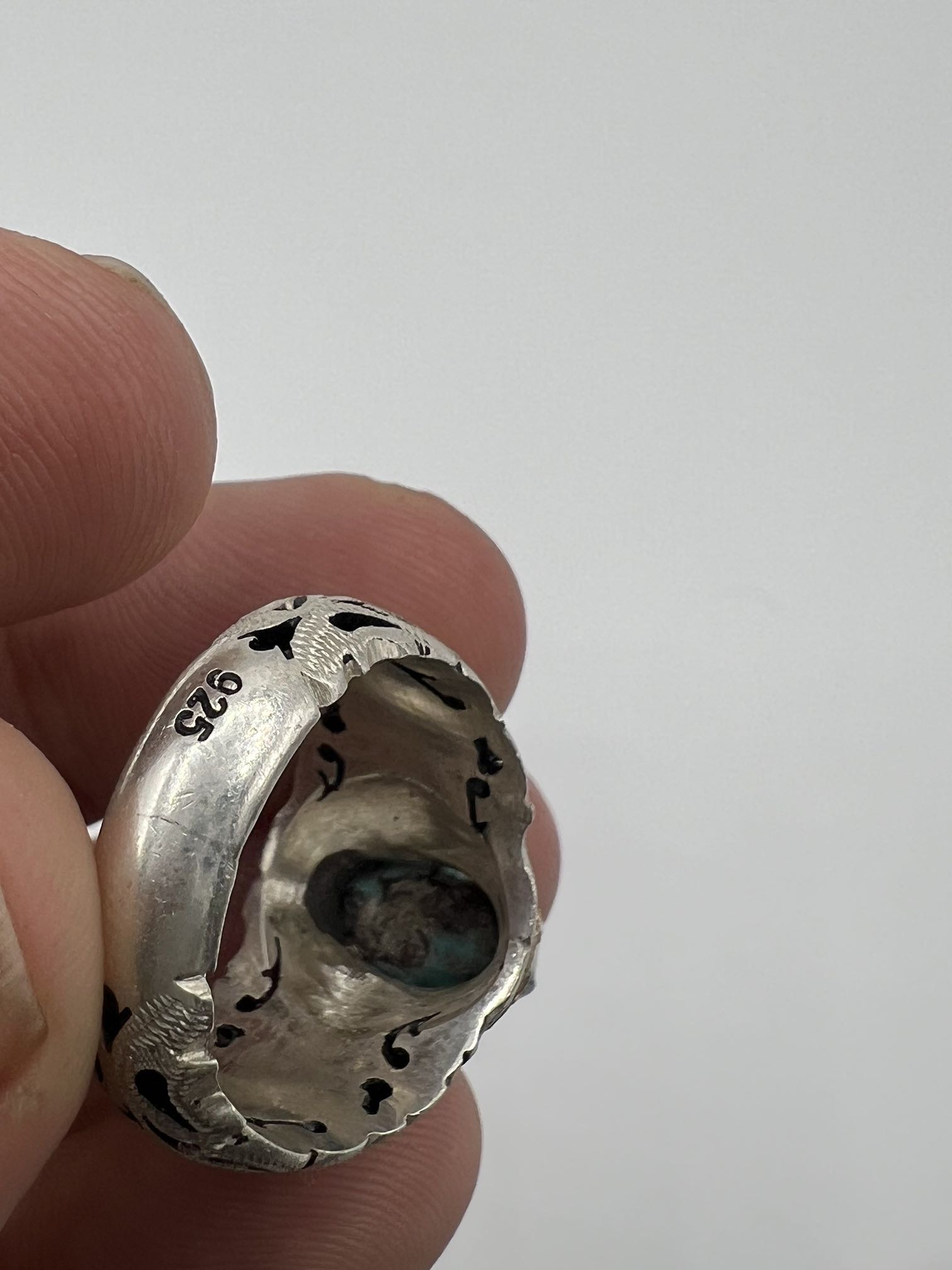 انگشتری مردانه با یه نگین شجری رو مشاهده میکنید، نگینی که از مغز سنگ فیروزه هست ، خوشرنگ با رگه های جذاب